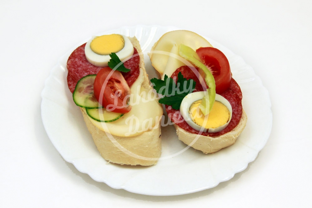Obložený chlebík je možné pripraviť na množstvo spôsobov. Tu Vám prinášame chlebík s výbornou trvanlivou salámou. Môžete si vybrať či chete chlebík s maslom alebo šalátovým základom. Chlebíky vzrábame z pravého sendviču.